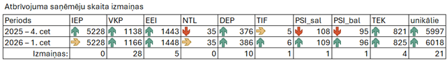 Kopumā DRN atbrīvojuma saņemšanai uz 2026. gada 1. janvāri pieteikti 115 nodokļa maksātāji, kuri līdz šim atbrīvojumu nesaņēma. VVD piešķīra atbrīvojumu no DRN par IEP 63 nodokļa maksātājiem, par VKP - 44 nodokļa maksātājiem, par EEI - 29 nodokļa maksātājiem, par DEP - 12 nodokļa maksātājiem, par TEK - 16 nodokļa maksātājiem, par TIF - 1 nodokļa maksātājam , par PSI_sal 3 nodokļa maksātājiem un par PSI_bal - 3 nodokļa maksātājiem. Savukārt 63 nodokļa maksātāji vairs neturpina saņemt atbrīvojumu par IEP, 15 par VKP, 24 par EEI, 12 par TEK, 2 par PSI_sal un 2 par PSI_bal.