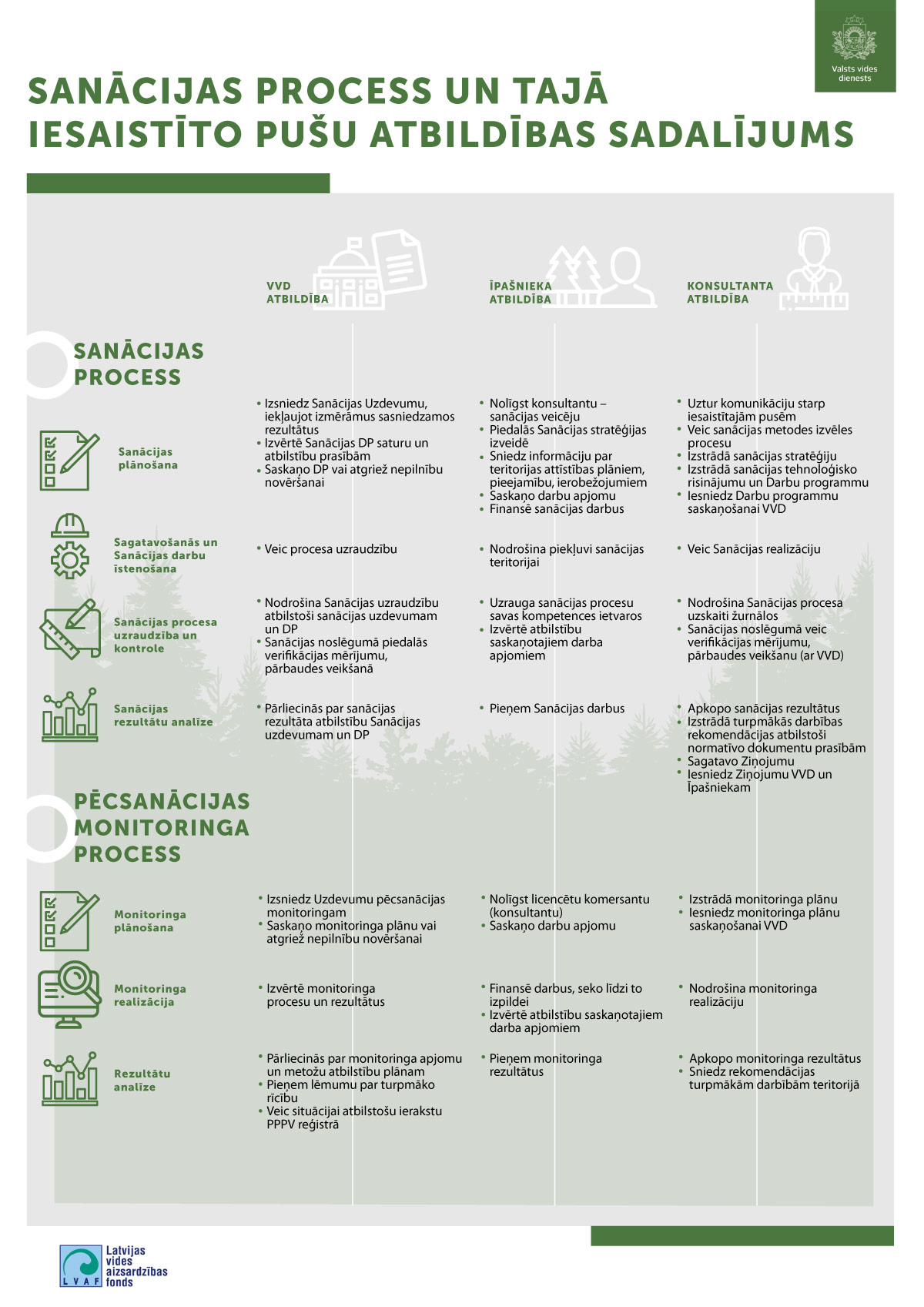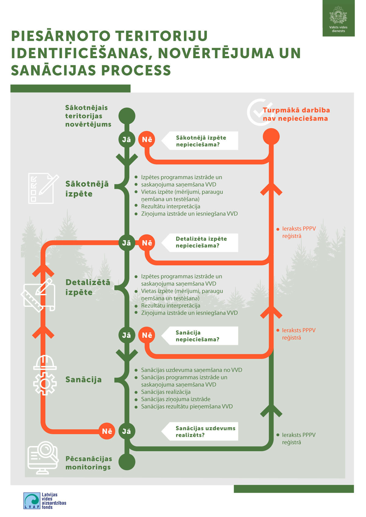 Piesārņoto teritoriju sanācijas vadlīniju un ieviešanas rekomendāciju izstrāde. Piesārņoto teritoriju sanācijas vadlīnijas aptvers aktivitāšu kopumu - vadlīnijas izpētes uzdevuma sagatavošanai; piesārņoto teritoriju draudu novērtēšanai; sanācijas uzdevuma izstrādei; sanācijas procesa uzraudzībai un kontrolei; sanācijas rezultātu novērtēšanai, kā arī rekomendācijas šo vadlīniju ieviešanai. Vadlīnijas savā ikdienas darbā izmantos Valsts vides dienesta (turpmāk –VVD) reģionālo vides pārvalžu (turpmāk – RVP) darbinieki, lai noteiktu prasības, apstiprinātu metodes un novērtētu rezultātus piesārņotu teritoriju izpētē un sanācijā, kas būtiski uzlabos Latvijā īstenoto sanācijas darbu kvalitāti.